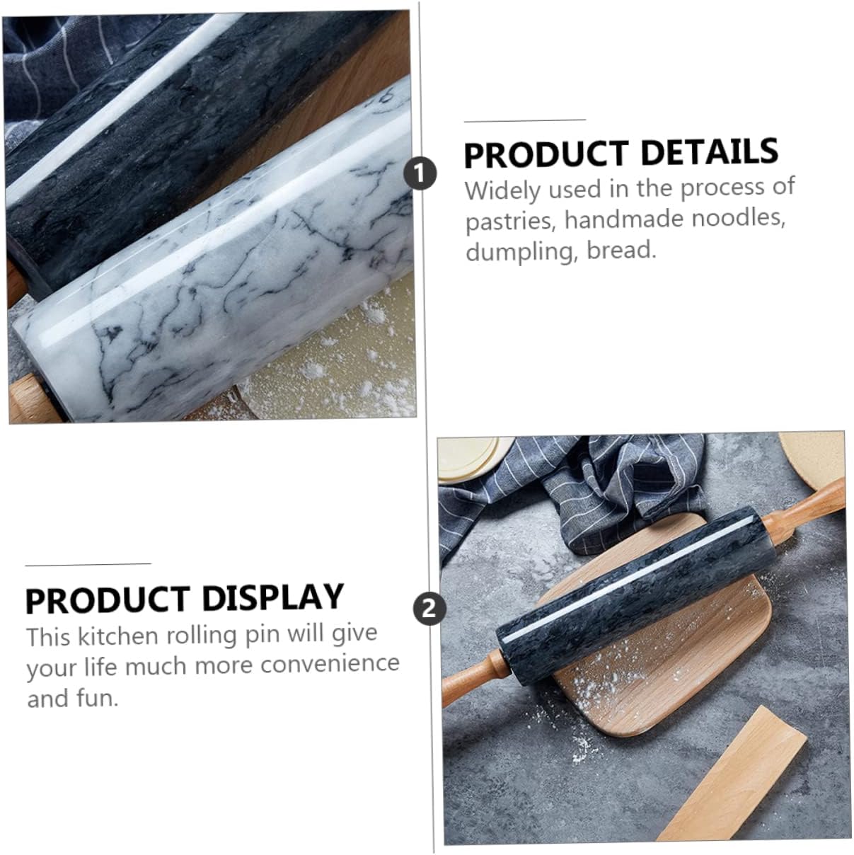 Package Include 1 x Rolling pin Features - Material: Wood + Marble rolling pin marble. - material, strong and , and , no peculiar smell rolling pin for baking. - for making cookie, pastry, pizza, fondant, chapatti, dumplings and much more dough roller. - Once own this, you could enjoy the happy DIY time with your , you are love it marble roller pin. - This rolling pin is one of the essential tools for any kitchen, let you and your family enjoy a different life marble rolling pin. - You can send it to your families and friends as a present, they will be happy marble rolling pins.Goods Descriptionmarble roller pin It is made from material for long time and use.marble rolling pin This kitchen rolling pin will give your life much more convenience and fun.marble rolling pins Widely used in the process of pastries, handmade noodles, dumpling, bread